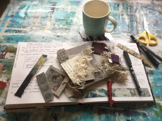 I’ve been a textile artist, for more years than I care to remember, I started painting in 2018 mainly due to arthritis affecting my hand stitching and I’ve fallen in love with it. For me it’s the process of painting that’s exciting and I’ve recently been enjoying working in paper, cloth stitch and paint.